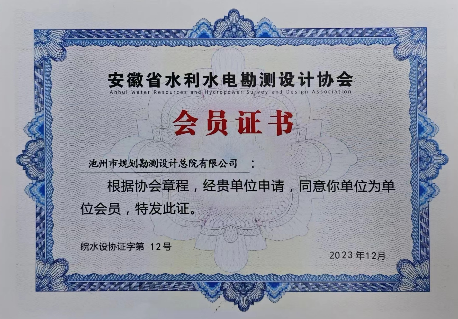 2023年12月27日,安徽省水利水電勘測設(shè)計協(xié)會第三屆會員大會在合肥召開,省民政廳、省水利廳、中國水利水電勘測設(shè)計協(xié)會等單位領(lǐng)導蒞臨指導,全省40多家會員單位代表參加。會議選舉產(chǎn)生了新一屆協(xié)會理事、監(jiān)事單位,池州市規(guī)劃勘測設(shè)計總院有限公司新當選為第三屆理事會理事單位,總院黨支部副書記、副總經(jīng)理左江同志當選為第三屆理事會理事。